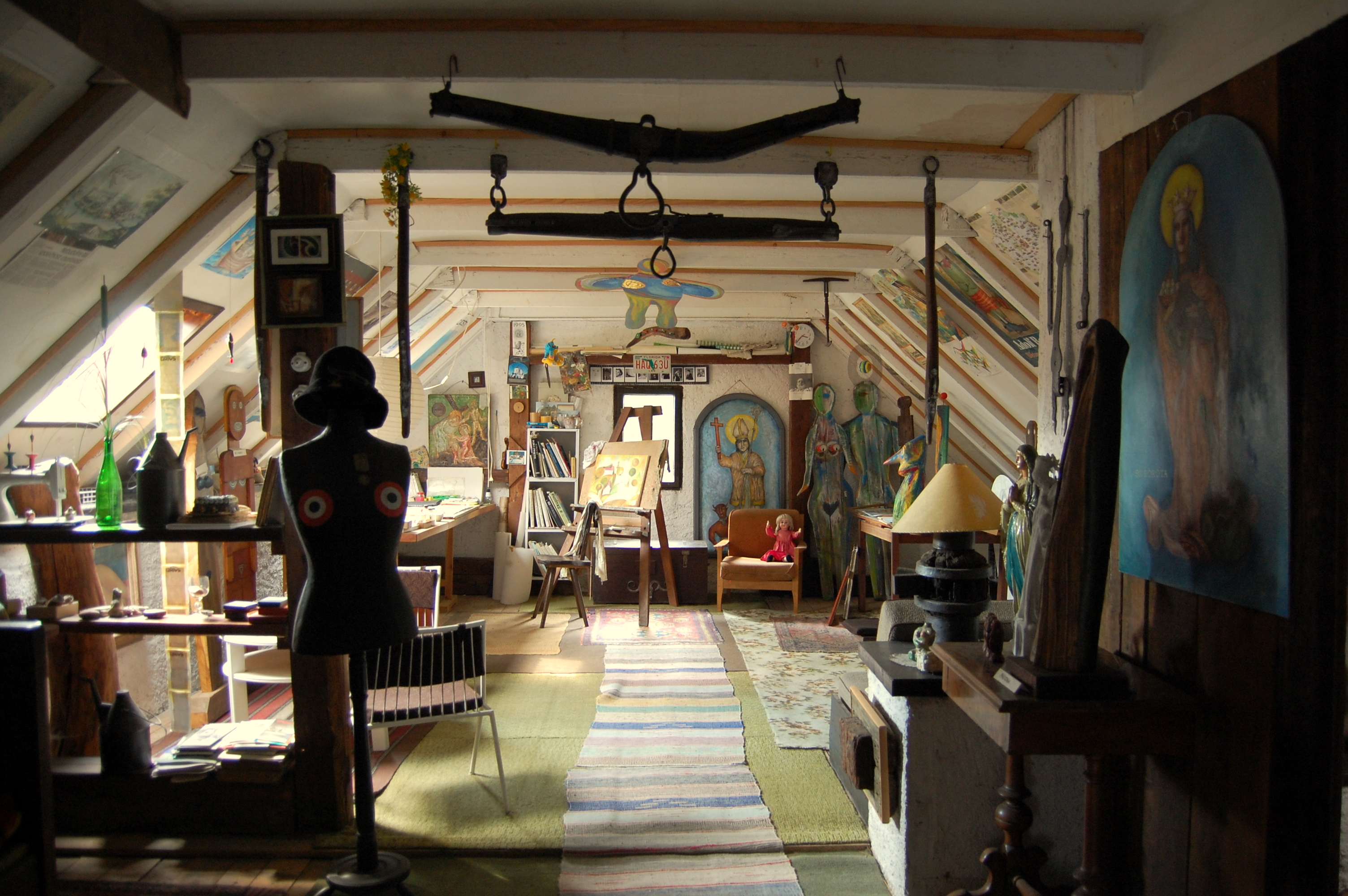 ranch. The local painter was a very interesting painter. He paints these abstract images of local life like the people of the village, the hills around Brandlin, big cities, himself, but most of his art consists of women, boobs and other woman body parts.