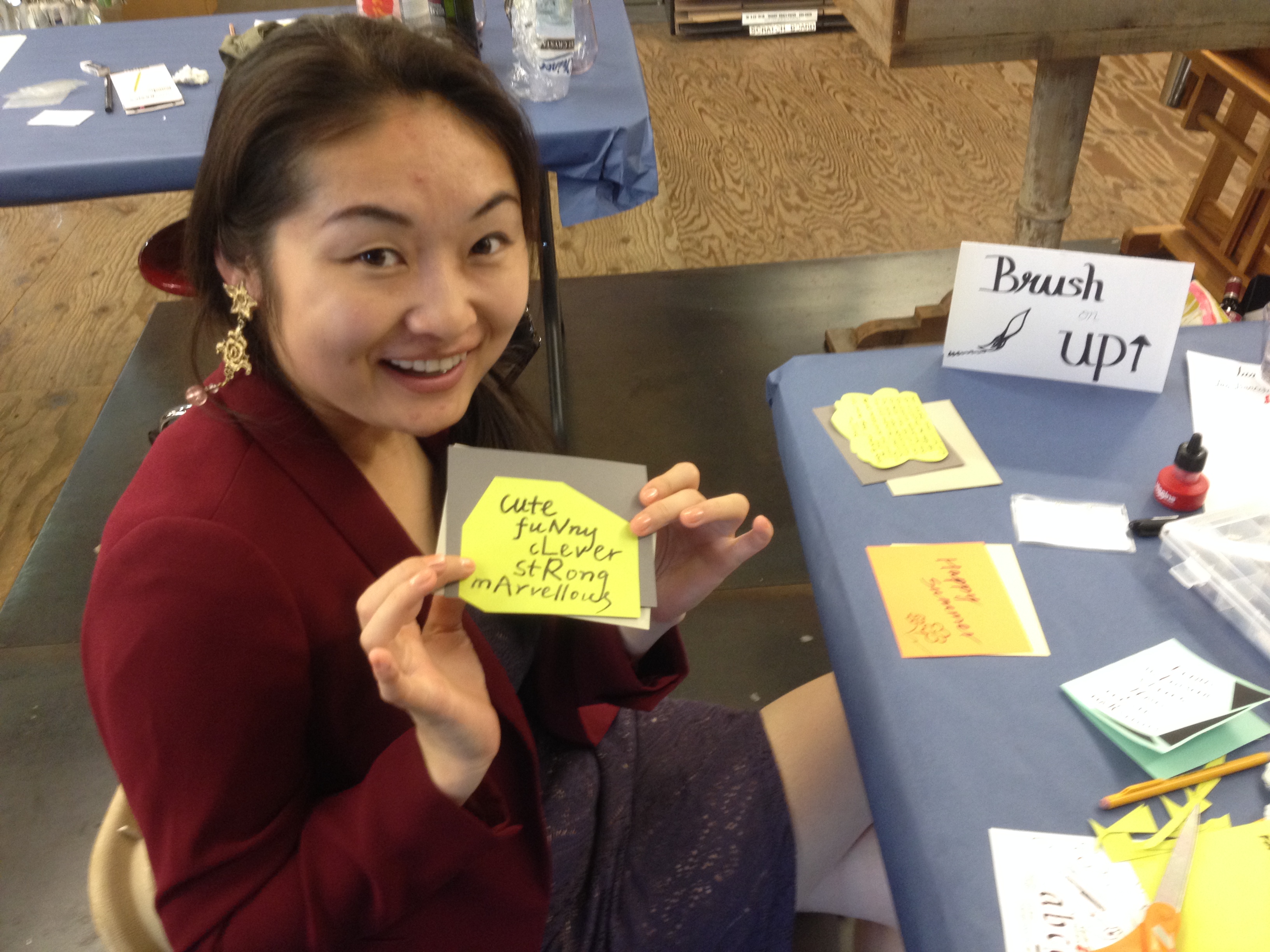 The turnout for the event overall was pretty good, we had walk-ins, we had friends, and even the employees of the art store come in and join us. Surprisingly, the turnout from the RSVP-ed guests didn’t really show up. There was an older lady who said she was a professional calligrapher so Brittany and I were really excited to have her because we really didn’t have any professional experience to teach anyone. We were hoping this lady will give us some calligraphy 101, but she was more focused on the wine! We had a mother and daughter in our session because the mom saw talent in her daughter and wanted to bring her around people who also do it for inspirations. We also had some people writing to their loved ones and it was nice to see how happy it made them feel for creating something so personal.